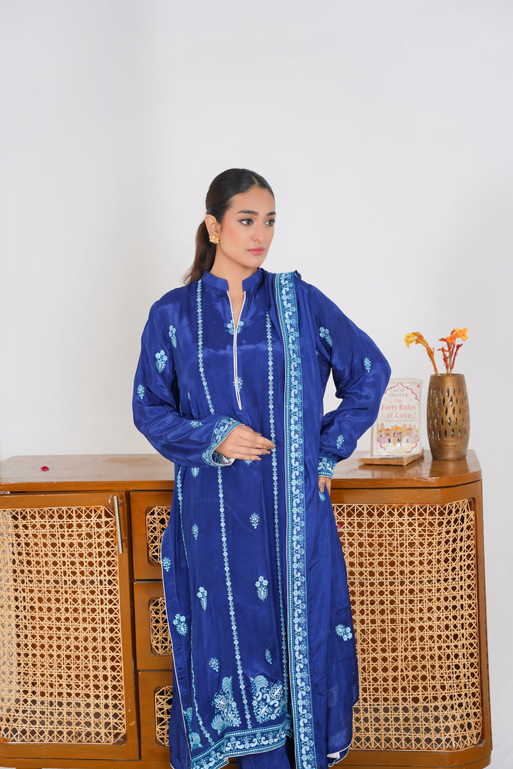•Embroidered sleeves Fabric: Boski Silk Color: Blue